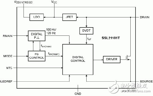 SSL21101具有高集成度、功能丰富、尺寸小的特点,内置一个高电压电源开关和一个允许直接用整流市电电压启动的威廉希尔官方网站