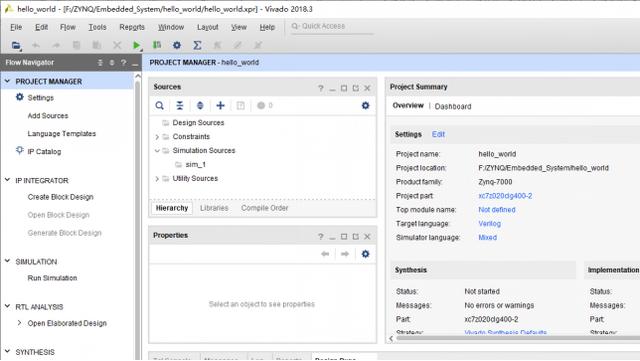 工程创建完成后的Vivado界面如图 1.3.7所示。