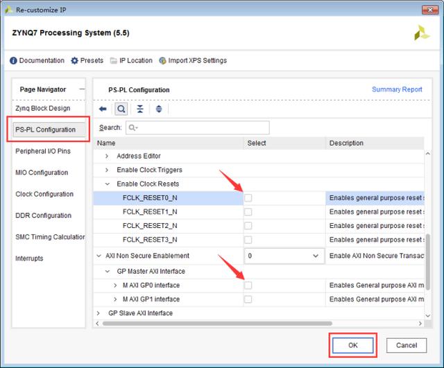 PS-PL Configuration页面能够配置PS-PL接口,包括AXI、HP和ACP总线接口。