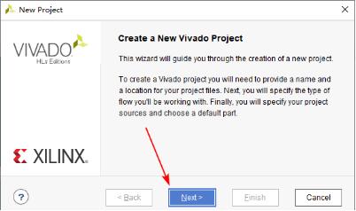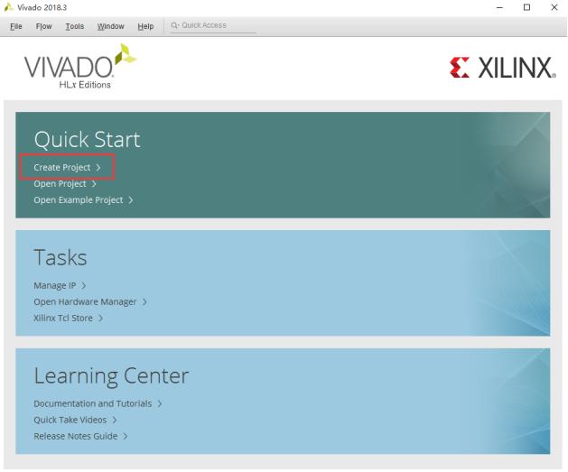 1-1 打开Vivado,进入Vivado界面后,点击“Quick Start”栏的 “Create Project”。然后在弹出的创建Vivado工程向导界面,点击“Next”。如下图所示: