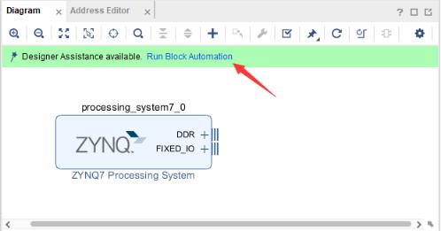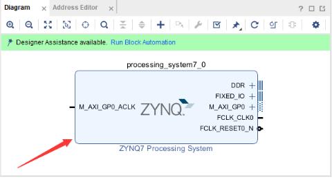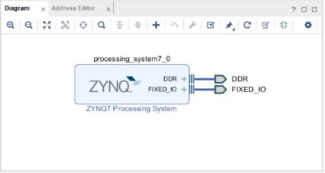 2-5 添加完成后,ZYNQ7 Processing System模块出现在Diagram中,如下图所示: