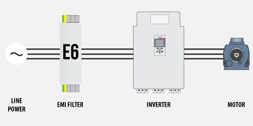 E6 EMI滤波器被设计为导致寄生电流回至地,而不是供应的电缆。