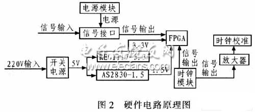 时间间隔测量系统的硬件设计主要包括:信号接口、电源、时钟等模块。